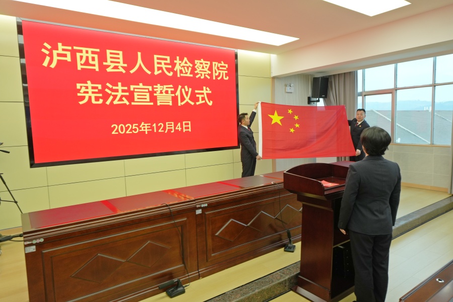 12月4日,泸西县人民检察院组织全体检察干警举行了庄严的宪法宣誓仪式。全体宣誓人面向国旗,右手举拳,铿锵有力地作出了忠于宪法、忠于祖国、忠于人民的郑重宣誓。仪式庄严肃穆,进一步强化了检察干警的职业荣誉感、责任感和使命感,激励干警将宪法精神内植于心、外践于行,切实履行好法律监督职责。仪式结束后,发动干警积极参与“中国普法”微信公众号开展的宪法知识竞答活动,营造了热烈的宪法学习氛围。